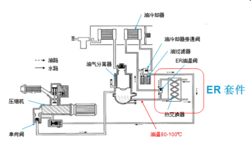 LERP(T)是一款外置于噴油螺桿壓縮機(jī)的熱能回收裝置,以水為媒介回收空氣壓縮機(jī)壓縮過(guò)程中產(chǎn)生的廢熱。利用廢熱來(lái)提升水溫,滿足用戶的熱水需求,以達(dá)節(jié)能目的。