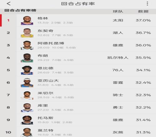 格林場均得分、籃板、助攻和三項命中率,都是個人生涯新低。他本賽季真實(shí)命中率只有46.1%,全聯(lián)盟倒數(shù)第9。格林身后的8名球員,場均得分最高的也不超過6分,簡單來說就是角色球員。而格林回合占有率37%,比東契奇還高。