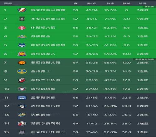 北京時間2月25日,隨著湖人失絕殺,109-110憾負魔術(shù),森林狼124-121險勝開拓者,今天的NBA常規(guī)賽結(jié)束了所有比賽,我們看看西部的最新排名!