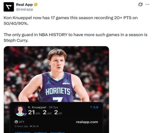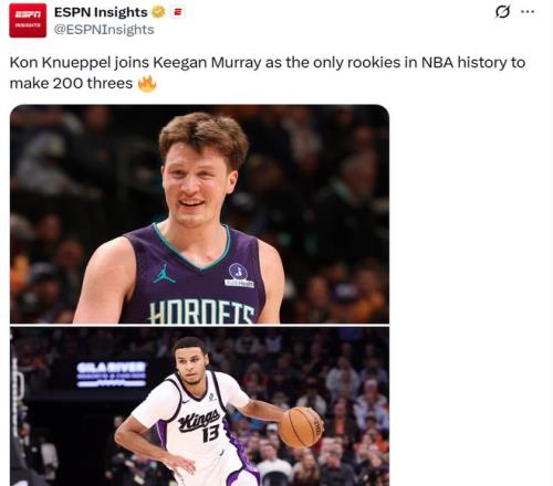 憑借這樣的表現(xiàn),克努佩爾一口氣刷新6大紀錄,不僅創(chuàng)造NBA歷史最快,還比肩三分第一人庫里。