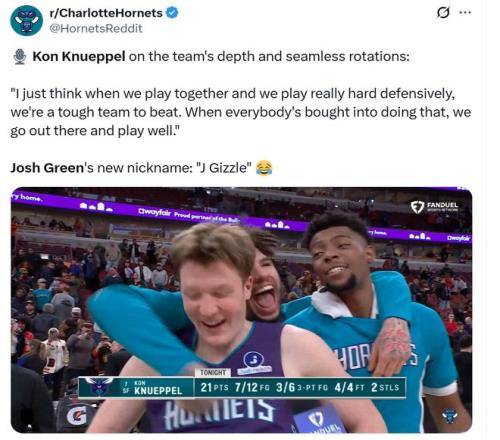 拿下這一場大勝后,黃蜂隊輕取2連勝,過去15場比賽拿到12場勝利強勢崛起,期間僅輸給活塞、火箭和騎士三支東西部前四級別強隊。