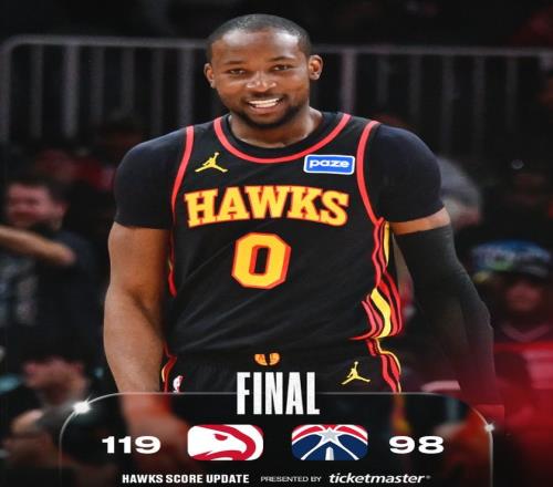 北京時(shí)間2月25日,NBA常規(guī)賽,亞特蘭大老鷹119-98大勝華盛頓奇才拿到二連勝。因?yàn)槠娌攀且恢[爛的球隊(duì),首節(jié)老鷹就領(lǐng)先15分,半場拉開到17分,第三節(jié)打完兩隊(duì)分差已經(jīng)拉開到38分,末節(jié)老鷹提前換下主力才被奇才追回一些失分。