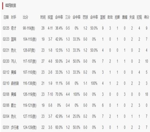 整個(gè)二月份里薩謝出戰(zhàn)了10場比賽,只有兩場比賽拿上雙的數(shù)據(jù),還有一場拿0分,里薩謝場均只有7.1分,命中率也只有36.3%,里薩謝這位2024年的狀元郎進(jìn)步實(shí)在是太小。