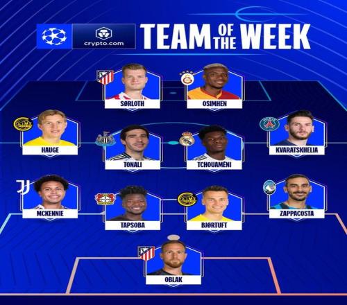歐冠官方公布了本周最佳陣容,瑟洛特、奧斯梅恩、楚阿梅尼、海于格等人在列。