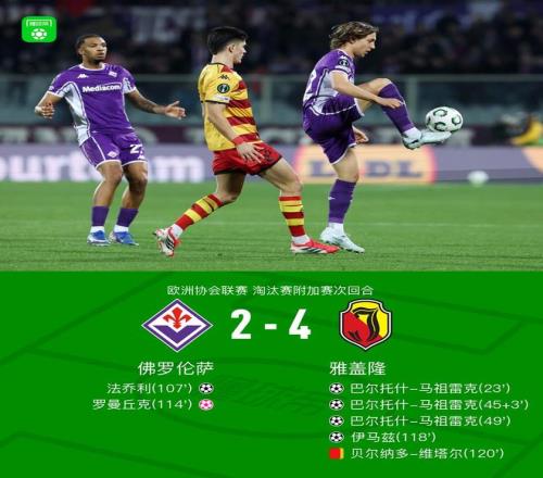 北京時間2月27日歐洲協(xié)會聯(lián)賽 淘汰賽附加賽次回合,佛羅倫薩對陣雅蓋隆。佛羅倫薩法喬利破門。雅蓋隆巴爾托什-馬祖雷克帽子戲法,伊馬茲破門,羅曼丘克自擺烏龍。最終比分佛羅倫薩 2-4 雅蓋隆。兩回合總比分佛羅倫薩5-4雅蓋隆。