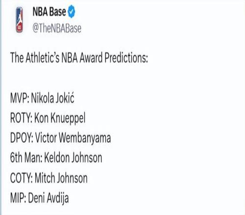 TA預(yù)測六大獎項:約基奇MVP克努佩爾最佳新秀馬刺或成最大贏家