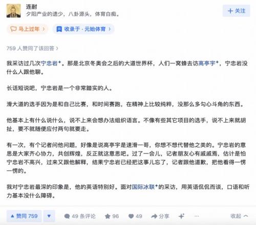 2月19日大年初三,寧忠?guī)r速度滑冰男子1500米破奧運(yùn)紀(jì)錄奪冠,斬獲了中國(guó)第三金。當(dāng)大部分輿論指向這一金牌打破歐美百年壟斷這一含金量之時(shí),我在知乎上卻看到了一個(gè)更私人且具體的故事。