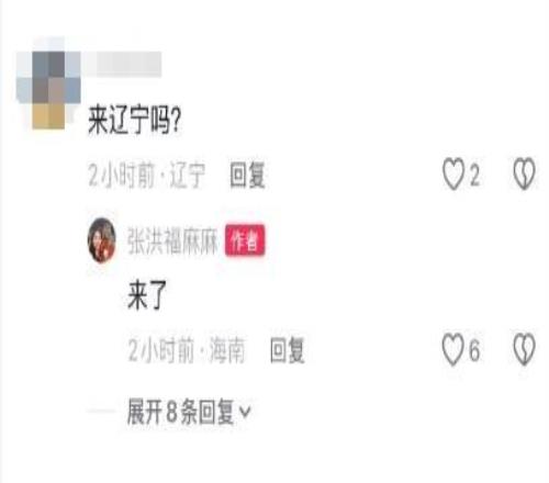 有球迷在張洪福母親的抖音評(píng)論區(qū)留言:來遼寧嗎?隨后張洪福母親回復(fù):來了。