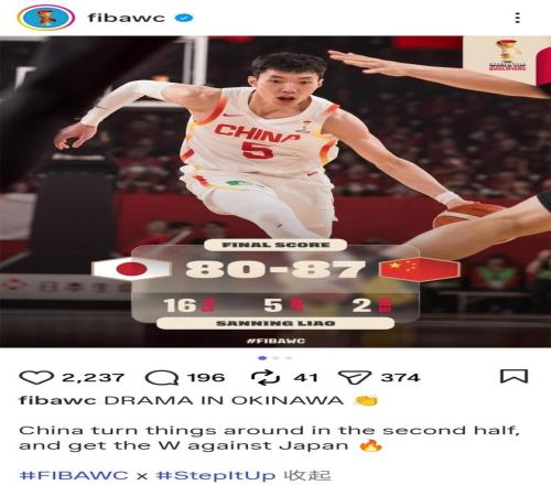 賽后,F(xiàn)IBA(國(guó)際籃球聯(lián)合會(huì))世界杯社交媒體官方賬號(hào)寫道:“沖繩神劇本!中國(guó)男籃從日本偷走一場(chǎng)勝利。”(China with a sneaky win over Japan),“Sneaky”一詞隱含“鬼祟、卑鄙”的貶義,被質(zhì)疑暗指中國(guó)隊(duì)勝之不武,引發(fā)全球球迷強(qiáng)烈不滿。