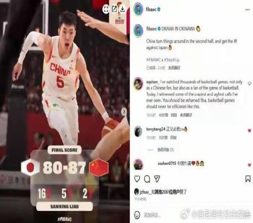 令人驚訝的是,賽后,F(xiàn)IBA世界杯的Instagram官方賬號(hào)卻這樣寫道:“沖繩神劇本!中國(guó)男籃從日本偷走一場(chǎng)勝利(China with a sneaky win over Japan)?!边@樣的描述引發(fā)了評(píng)論區(qū)翻車。